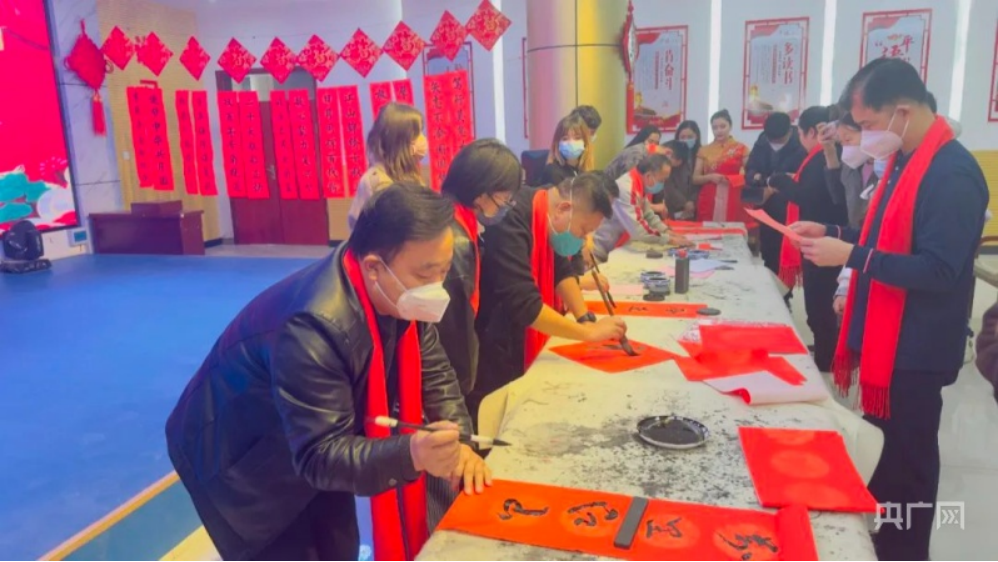 书法家们现场写春联、写“福”字(央广网发 伽师县委宣传部供图)
