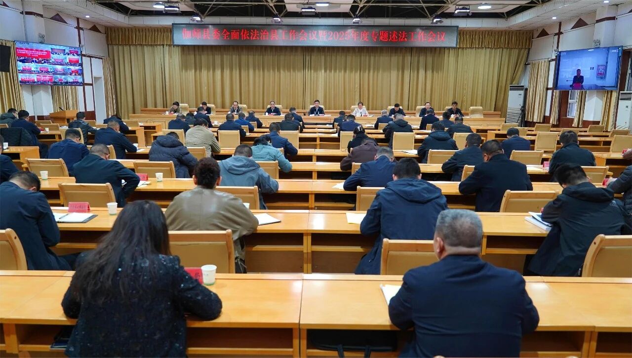 3月3日,伽师县委召开全面依法治县工作会议暨2025年度专题述法工作会议,全面贯彻落实党的二十大和二十届历次全会精神,深入学习贯彻习近平法治思想和习近平总书记关于全面依法治国工作的重要指示、关于新疆工作的重要讲话重要指示批示精神,贯彻落实自治区党委全面依法治疆工作会议、2025年度自治区专题述法工作会议精神和喀什地委全面依法治地暨2025年度专题述法工作会议精神,总结成绩、分析形势,安排部署2026年重点任务,进一步压紧压实党政主要负责人履行推进法治建设第一责任人职责,不断提高法治伽师、法治政府、法治社会建设水平,为铸牢中华民族共同体意识、建设社会主义现代化伽师提供坚强法治保障。县委书记刘志成主持会议并讲话。