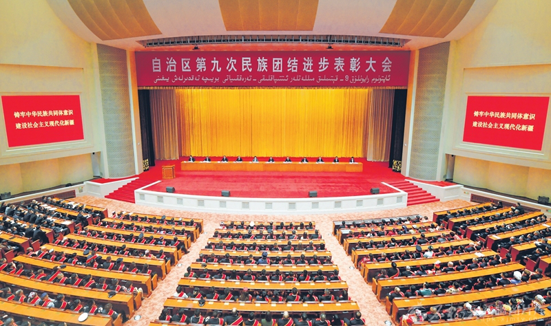 自治区第九次民族团结进步表彰大会10月16日在新疆人民会堂举行。自治区党委书记、兵团党委第一书记、第一政委陈小江出席大会并讲话,强调要深入学习贯彻习近平总书记关于加强和改进民族工作的重要思想,全面贯彻落实习近平总书记听取自治区党委和政府工作汇报时的重要讲话精神、对自治区成立70周年的重要题词精神,完整准确全面贯彻新时代党的治疆方略,牢牢扭住社会稳定和长治久安总目标,紧紧围绕铸牢中华民族共同体意识、推进中华民族共同体建设,努力建设社会主义现代化新疆。