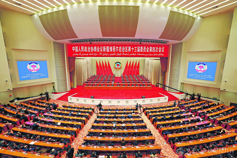 1月30日,中国人民政治协商会议新疆维吾尔自治区第十三届委员会第四次会议在新疆人民会堂闭幕。□石榴云/新疆日报记者 崔志坚 摄
