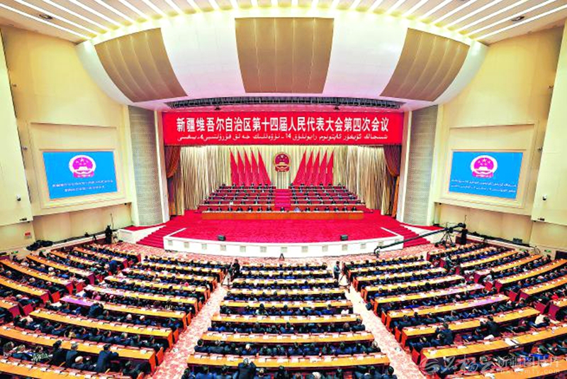 1月31日,新疆维吾尔自治区第十四届人民代表大会第四次会议在新疆人民会堂闭幕。□石榴云/新疆日报记者 崔志坚 摄