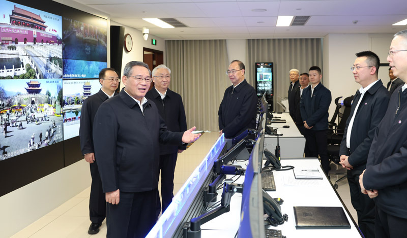2月14日下午,中共中央政治局常委、国务院总理李强来到应急管理部,检查指导节日期间重点行业和领域安全防范、春运春节服务保障等工作。新华社记者黄敬文摄