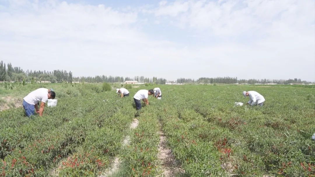 年初,亚格其阿依万村与鲁疆红农业科技发展有限公司签订合同,采取“订单+农户”的种植模式,公司对种植户从种植到施肥管理进行全程跟踪服务,出产的辣椒按照合同价格进行收购。“现在大概有十个村在采摘,已经收了30几吨了。”鲁疆红农业科技发展有限公司负责人田海燕说。