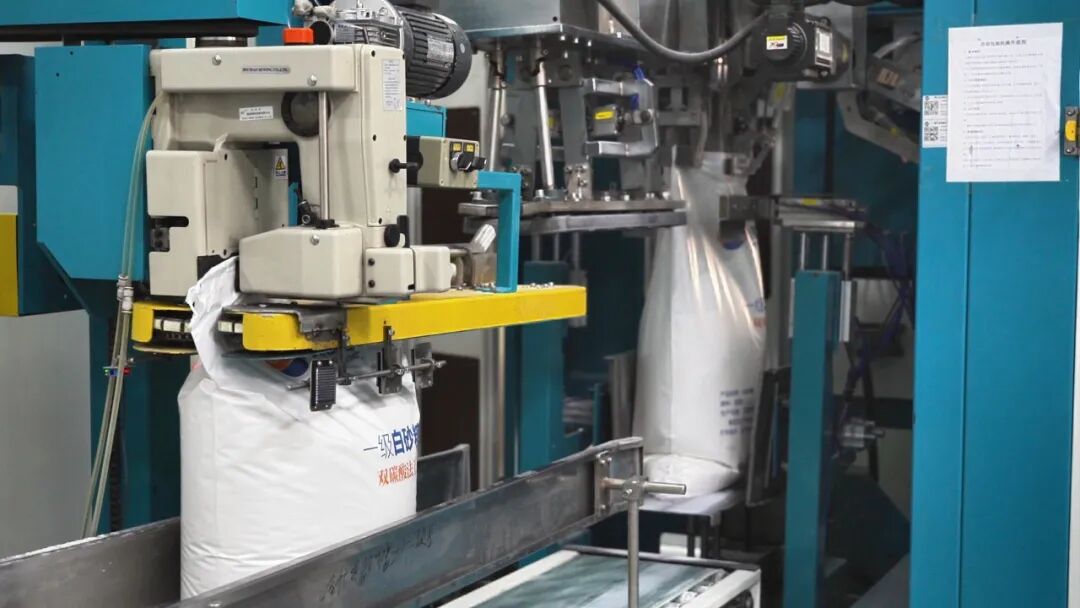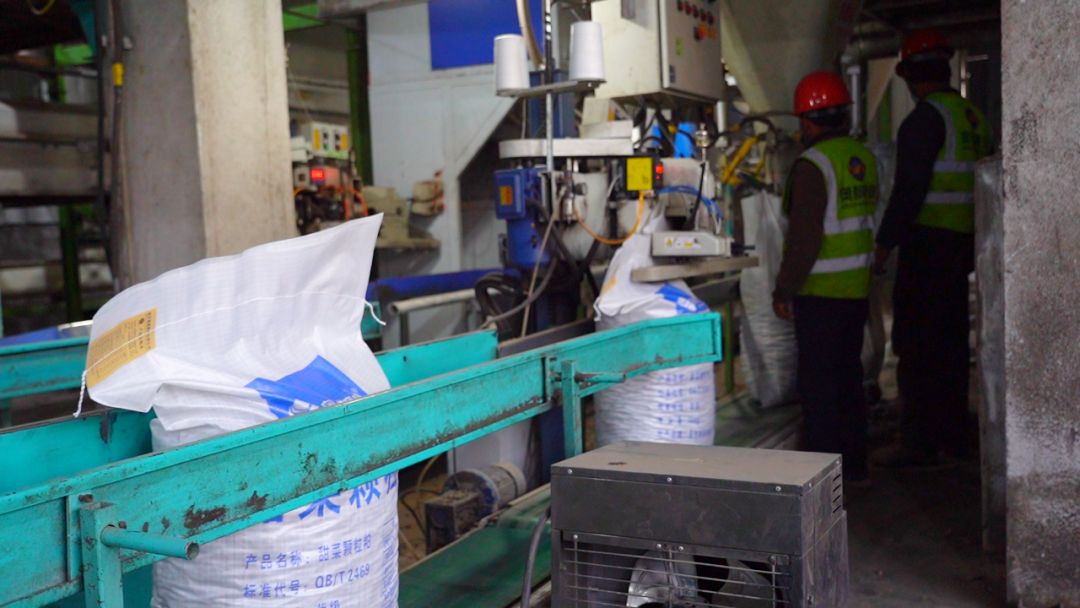 喀什奥都糖业有限公司生产的颗粒粕在装袋打包