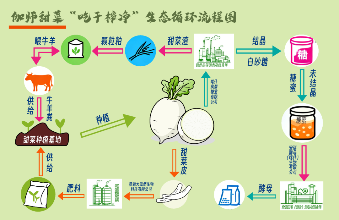 就这样,甜菜的每一部分都被充分利用,所有产物最终都以不同形式回归土地,形成一个“从农田中来,回农田中去”的绿色闭环,既保护环境,又带动养殖、增收,实现生态与经济的双赢!