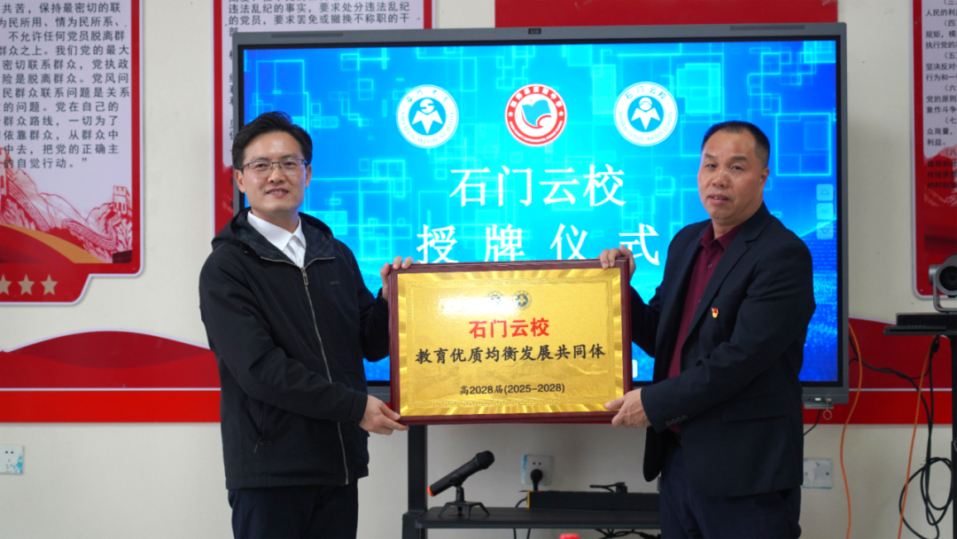 仪式上,两校还围绕办学理念、教学管理等深入交流,石门中学向伽师县实验中学授予“石门云校合作学校”牌匾,双方表示将建立长期稳定的合作机制,推动教育资源深度融合。