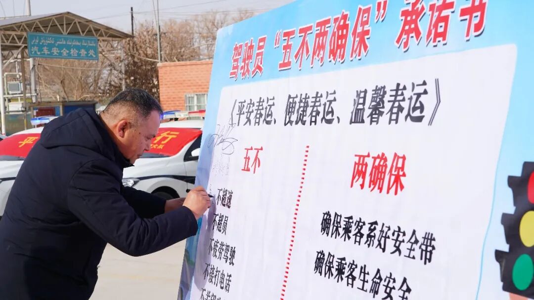 所有参运驾驶员现场签署安全承诺,坚决做到“五不两确保”,严守行车规范。